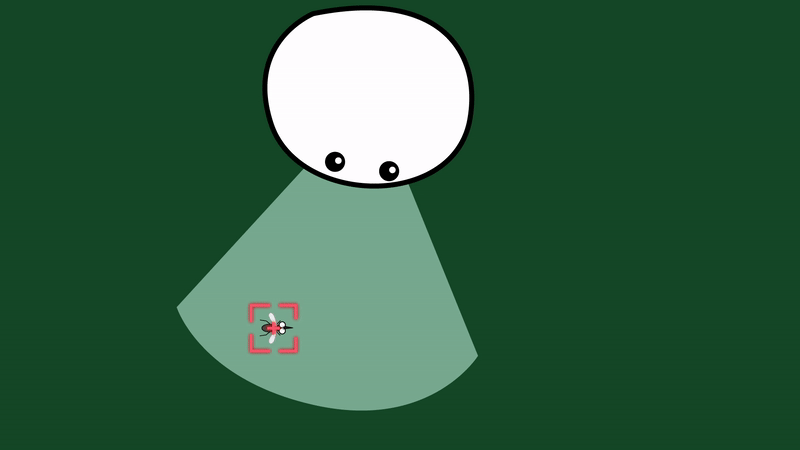 그리고 눈을 깜빡일 때 안구가 가만히 있는 것이 아니라 조금씩 움직이므로 깜빡이기 전에 잡은 초점과 깜빡인 후에 잡은 초점은 미세한 차이가 있습니다. 이때 모기가 직선 방향으로만 비행한다면 눈은 경로를 예측해서 깜빡이는 순간에 초점을 예측하여 보정합니다.