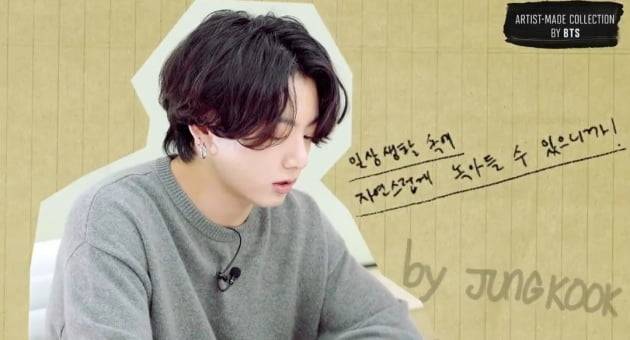 지난 21일 'HYBE MERCH' 공식 트위터에서는 정국의 '아티스트-메이드 컬렉션'(ARTIST-MADE COLLECTION) 굿즈가 공개됐다.