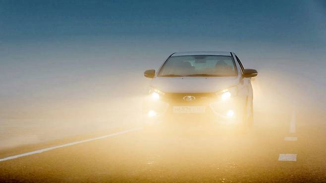 3. 전조등보다 아래에 설치되는 안개등(fog light)은 눈이나 비가 올 때, 안개가 끼는 등 날씨가 좋지 않을 때 주로 사용합니다. 전조등보다 가까운 곳을 비추며 투과성이 높고 빛의 조사 각도가 넓어 가까이 있는 맞은편 차량이나 보행자의 위치를 알려주고 존재를 확인하는 데에 효과적이죠.