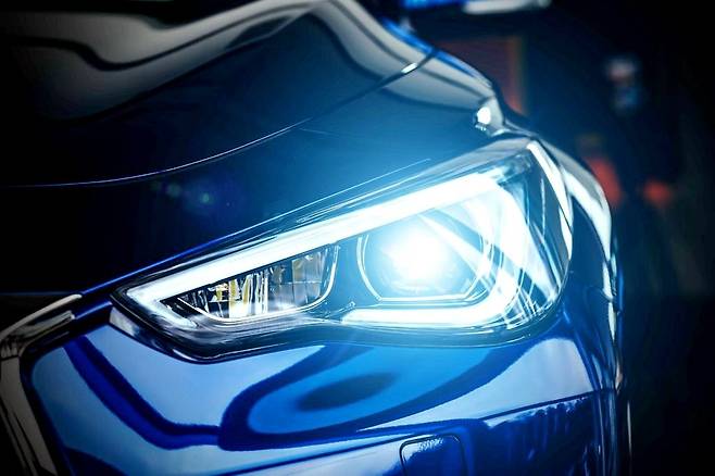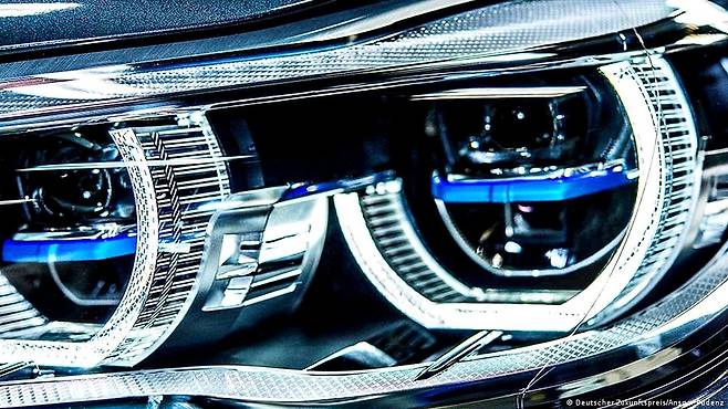 4. 레이저 헤드 램프- 헤드램프 내부의 형광물질에 레이저 광선을 쏘아 빛을 만듭니다. LED보다 5배 밝고 2배 먼 거리인 600m까지 전방을 비춰줍니다. LED 라이트보다 크기가 작아 디자인의 범위가 넓으며 부품 무게도 줄일 수 있습니다. 따라서 향후 LED 라이트를 대체할 가능성이 가장 큰 광원이라 할 수 있죠. 직진성이 강한 레이저를 사용해서 먼 거리를 환하게 비추면서도 반대편에서는 눈이 부시지 않은 장점이 있으며 에너지 효율도 LED 대비 30% 이상 뛰어납니다.
