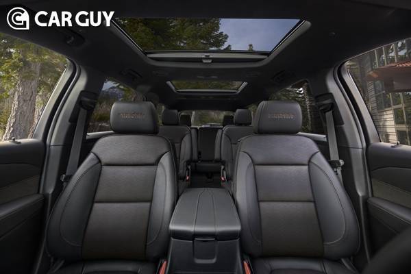 신형 트래버스는 부분변경의 정석을 보여준다. 차의 크기나 파워트레인 같은 큰 변화가 없다. 요즘 현대차그룹이 부분변경을 선보이며 ‘풀체인지에 가까운 변화’를 보여주는 모습과 다르다. 신형 트래버스는 최신 쉐보레 패밀리룩을 적용했다. 기존 모델과 다르게 헤드램프를 아래로 내렸고 그 자리에 가늘어진 주간주행등을 달았다. 아래로 내린 헤드램프는 ‘ㄱ’자 모양의 보조 주간주행등 옆에 있어 마치 안개등처럼 보인다. 옆모습은 이전 모델과 다른 점을 찾기 힘들다. 뒷모습도 테일램프 그래픽의 변화 말고는 큰 차이가 없다. 시승차는 하이컨트리 트림이다. 전면 그릴에 색깔이 들어간 ‘고드릭 액센트 갈바노 크롬 그릴’, ‘20인치 루나 그레이 머신드 알로이 휠’(모두 하이컨트리 전용)이 적용됐다.