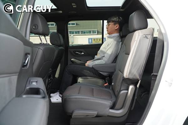 대형 SUV답게 실내 공간은 넉넉하다. 3열을 세워도 트렁크 공간이 부족함 없다. 195cm의 기자가 앉아도 머리나 무릎 공간이 남는다(넉넉한 정도는 아니다, 2열 사진 속 기자는 179cm). 미국차답게 2열과 3열 시트가 평평하게 접힌다. 하이컨트리 트림은 3열을 전동으로 접고 펼 수 있다. 넉넉한 공간을 갖춰 두 명 정도 차박을 한다면 별다른 평탄화 작업이 필요 없다. 5230mm의 전장 덕분에 195cm 장신의 기자가 누워도 발아래로 두 뼘 이상 공간이 남는다.