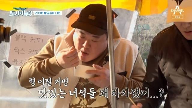 64㎝ 송어를 잡은 김준현에겐 톡톡한 보상이 떨어졌다. 장PD가 낚시 도중 떡볶이 한 접시에 3만 원, 믹스커피 한 잔에 1만 원, 유자차 한 잔에 5만 원인 저세상 물가 포차를 개장하며 "송어 잡으신 분은 무료"라고 선언한 것.