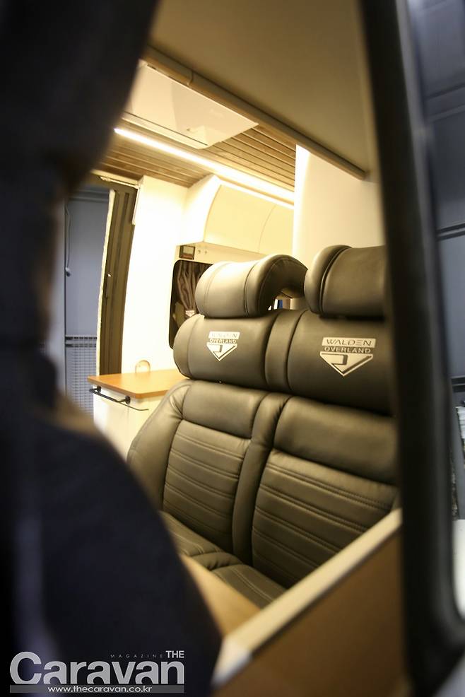 사진상의 월든 익스페디션은 1열 순정 3인 시트, 후면부 실내는 가장 기본적인 레이아웃으로 보여진다. 만약에 4인이 탑승해야 한다면 출입구 옆 소파를 추가 1인 변환 시트로 선택 적용하면 모든 문제는 해결된다. 또 하나의 방법은 1열에 운전석, 동반석 2인 구성으로 바꾸고, 2열에 추가 시트 두 개를 적용해 4인승의 여유로운 공간으로 바꿀 수도 있다는 점이다.