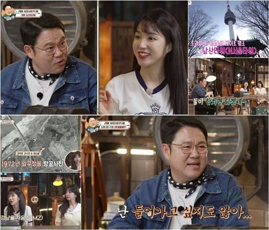 그런가 하면, 김구라는 ‘MZ 세대’들의 맛집 찾기 꿀팁이 무엇인지 두 사람에 물어본다. 이에 진예와 해인은 SNS를 활용한 자신만의 노하우를 공개한다. 그러자 김구라는 “라떼 시절엔 무조건 여기”라며 1980~90년대 데이트 뷰 원조 맛집이었던 서울의 상징 ‘남산타워’를 언급한다. 나아가 두 사람에게 “남산에서 자물쇠를 잠가 봤나? 남산 돈까스와 케이블카는?”이라며 돌직구 질문을 던져 진예와 해인을 당황케 한다. 그럼에도 두 사람은 솔직한 대답을 들려줘 김구라를 흡족케 한다.