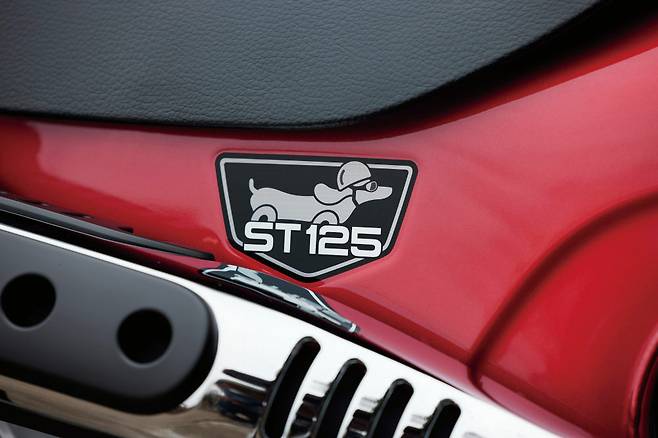 그런데 그 일이 실제로 일어났다. 루머인줄 알았던 닥스125가 실제로 등장한 것이다. 모델명은 ST125 DAX. 심지어 팬들의 예상보다 훨씬 귀여운 모습이다. 연료탱크를 겸하는 T자형의 두툼한 차체와 간결한 엔진구조까지 오리지널 닥스의 실루엣을 그대로 재현했다. 몽키125와 비교하면 크기는 비슷하지만 앞뒤 길이가 조금 더 길다. 특히 시트의 길이가 상당히 차이가 난다. 1.5인승 느낌의 몽키와 달리 확실히 2인승차를 고려한 디자인이다. 리어어스펜션의 마운트 위치도 뒤쪽으로 옮겨졌고 풋패그와 핸들바가 앞으로 당겨지며 좌석 공간도 크게 확보되었다.