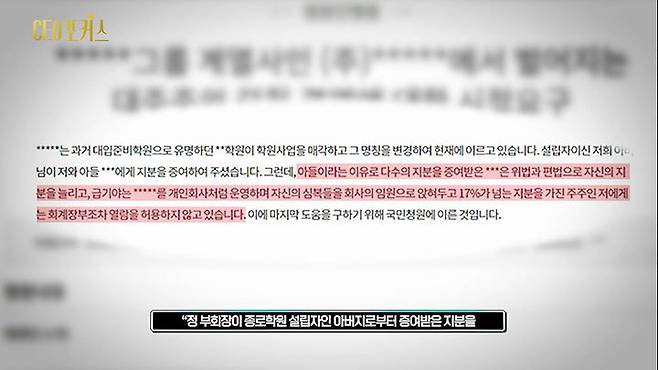 6월 1일 대법원은 정 부회장의 여동생인 정은미씨가 서울PMC(구 종로학원)를 상대로 낸 회계장부 열람 및 등사 청구 소송 상고심에서 원고 패소로 판결한 원심을 파기하고 사건을 서울고등법원으로 돌려보냈습니다.
