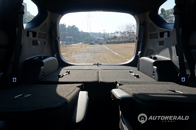 그래도 장점이 많다. 넉넉한 숄더룸으로 옆자리 간섭을 받지 않아도 되고 팔걸이도 편하다. 그래서 감성이 예민한 청소년에게 더없이 훌륭한 공간이 된다. 등받이를 젖히고 파노라마 선루프로 들어오는 파란 하늘을 온몸으로 받는 호사도 누릴 수 있다. 시승차에는 없었지만 뒷좌석 엔터테인먼트를 보태면 아이들 몸부림도 멈추게 할 수 있다.
