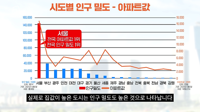 시도별 인구 밀도와 아파트값…압도적 1위 서울