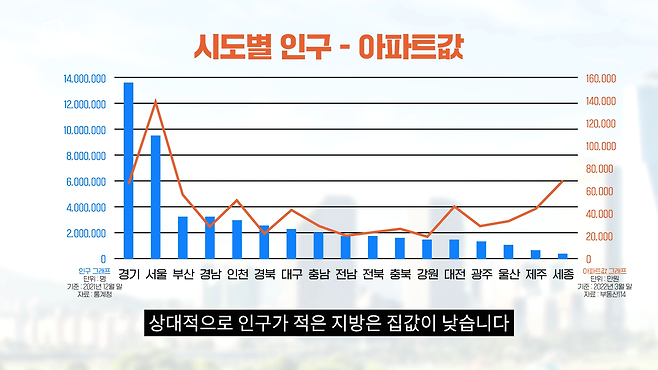 시도별 인구와 아파트값…인구 1위는 천만도시 경기도