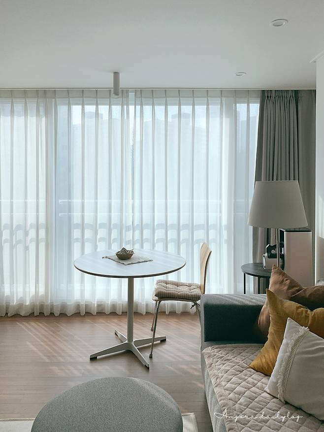 30평대에서 썼던 커튼이 이질감 없이 잘 맞는 게 신기했다. 커튼도 새로 맞추면 은근 돈이 많이 깨지는데, 고민하다가 갖고 오길 잘 한 것 같다.