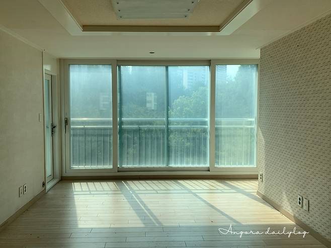 오랜만에 다시 보는 예전 30평대 거실. 바닥이 폴리싱 타일이라 더 넓어 보인다. 구축이라 거실이 넓은데 그만큼 개방감이 있었다.