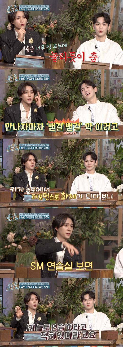 이어 손동운은 “이 친구가 이런 부분(춤)으로 화제가 되다 보니까 따로 연습을 한다는 소문이 있더라. SM 연습실을 보면 ‘키 놀토 연습’ 이렇게 적혀 있더라”라고 폭로했고, 이에 ‘놀토’ 출연진은 “진짜냐”며 웅성거리기 시작했다.