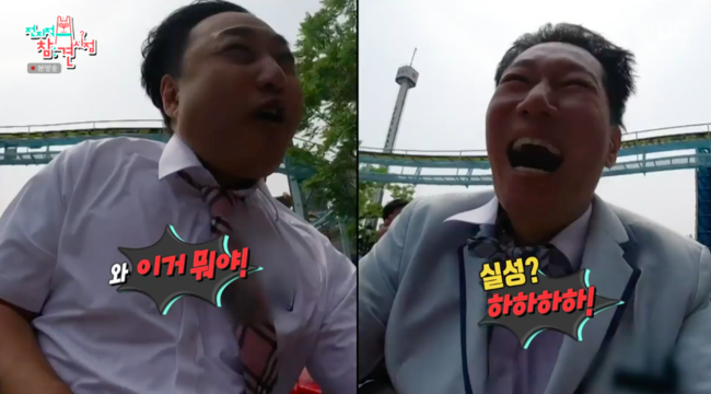 두 사람은 주변 사람들의 추천으로 가장 무서운 놀이기구 두 개를 타기 시작했다. 정신을 차리지 못하는 지석진과 김수용은 급격한 노화를 뽐냈다. 이어 두 사람은 석촌호수 보트를 타러 갔다. 지석진은 “우리에게 이게 어울린다 요즘 세대 따라했다가 내가 골병난다”고 말해 웃음을 안겼다.