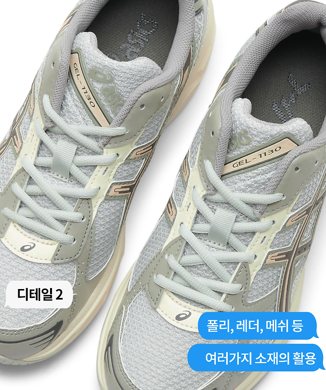 아식스 X 아이사피 젤 1130도레더, 폴리, 메쉬 등 여러 소재를