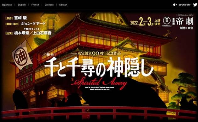니혼게이자이신문 등 일본 언론에 따르면 무대판 '센과 치히로의 행방불명'이 도쿄 데이고쿠극장에서 상연 중입니다.