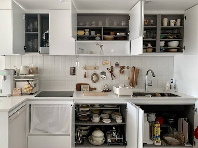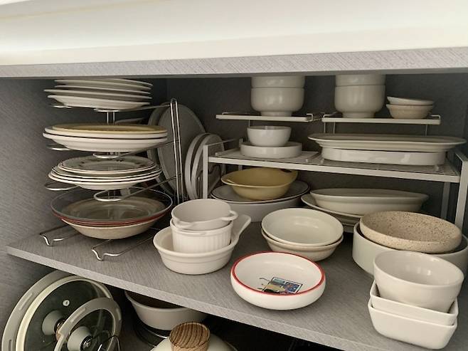 워낙 요리를 자주 하고, 사용하는 접시가 다양해서 어쩔 수 없는 선택이었어요.