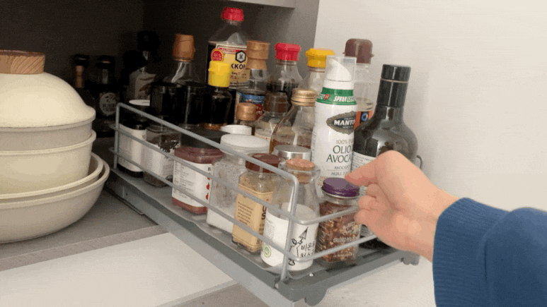 전부터 인출식 선반을 설치하고 싶었는데, 대부분의 인출식 선반이 전부 2단이라 높이가 높더라고요. 저희집 하부장은 높이가 낮았거든요 (ㅠㅠ)