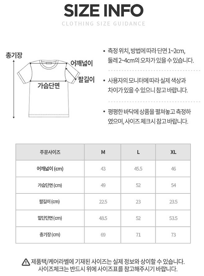 사이즈를 확인해주세요!