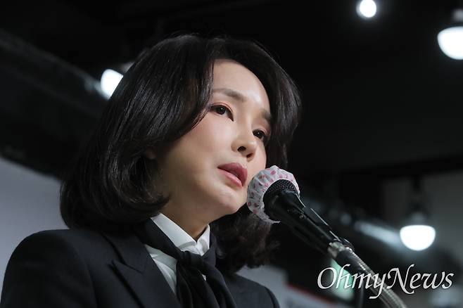 | ▲ 국민의힘 윤석열 대선 후보 부인 김건희 코바나컨텐츠 대표가 26일 오후 서울 여의도 국민의힘 당사에서 자신의 허위 이력 의혹과 관련해 입장문 발표를 하고 있다 |