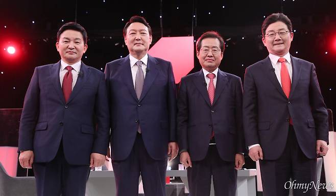 | ▲ 지난해 10월 31일 저녁 국민의힘 대선 경선 후보자 제10차 합동토론회 모습. 왼쪽부터 원희룡, 윤석열, 유승민, 홍준표 당시 대선 경선 후보의 모습니다. |