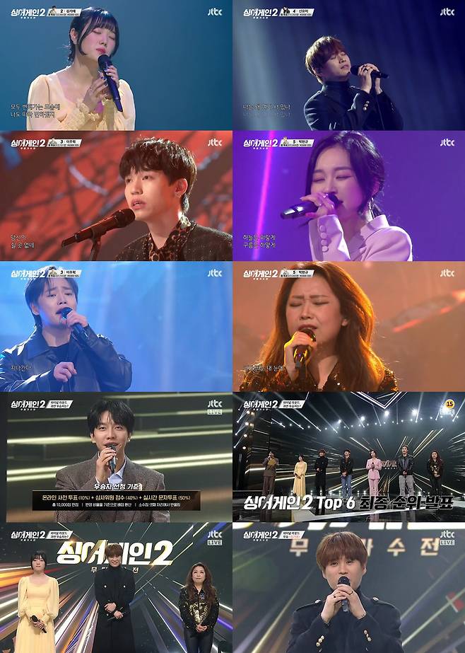 지난 28일 방송된 JTBC '싱어게인-무명가수전' 시즌2(이하 '싱어게인2') 파이널 라운드에서는 Top6 '독보적 음색' 김소연, '허스키 보이스' 김기태, '음색 깡패' 이주혁, '파란 마녀' 신유미, '보컬 타짜' 박현규, '가정식 로커' 윤성이 최종 우승을 두고 마지막 경연을 펼쳤다.