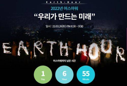 지구촌 전등 끄기 캠페인 ‘어스아워(Earth Hour)’가 26일 오후 8시30분부터 1시간 동안 진행된다. ‘우리가 만드는 미래(Shape Our Future)’를 주제로 열리는 올해 어스아워에는 전 세계의 시민들이 참여해 자연보전을 향한 연대와 의지를 보여줄 예정이다.