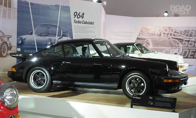 911 삼총사를 구경하던 중 관계자가 문을 열어줘서 짧게나마 실내를 둘러볼 수 있었다. 다이얼 5개로 구성한 계기판과 왼쪽에 자리한 키 박스, 드라이버 가슴을 향해 반듯이 뻗어 나온 운전대는 여전히 심장 뛰게 하는 매력을 품고 있었다. 세월의 흔적은 있지만 인테리어 소재가 요즘 차와 비교해도 떨어지지 않아 더욱 인상적이었다.