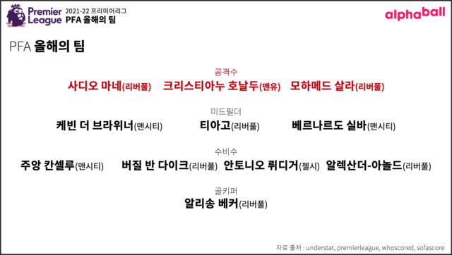 올해의 팀 공격수 세 자리에 마네, 호날두, 살라가 이름을 올렸다. 전술한대로, 살라는 선정됐고 손흥민은 선정되지 않았다. 영국 BBC와 스카이스포츠 등 주요 언론과 EPL 사무국이 선정한 베스트 11에는 들었는데도 말이다.
