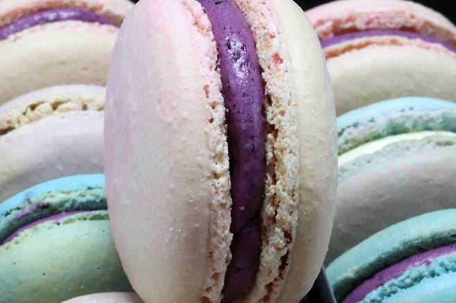 마카롱은 머랭으로 만든 크러스트 사이에 버터나 잼 등으로 필링을 채워 만든 쿠키를 말하는데요!