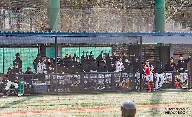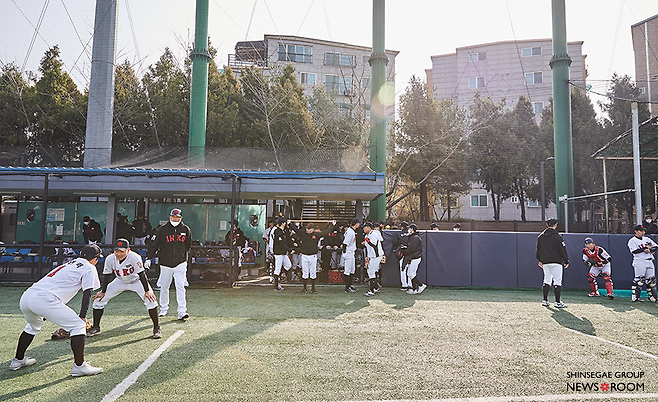 봄 햇살이 가득 들어오는 구장 안으로 양 팀 선수들이 입장을 시작했다. 신월야구장에 모인 선수들의 모습에 투지가 느껴졌다. 더그아웃에서 다소 긴장된 모습으로 몸을 풀던 양 팀 선수들은 경기 시작 직전 각자 동그랗게 모여 소리를 지르며 결의를 다졌다.