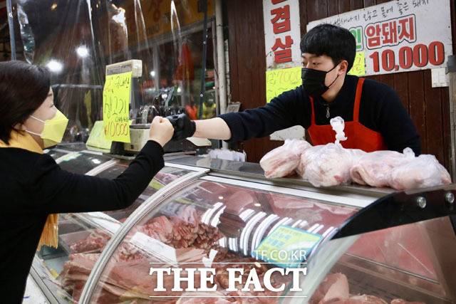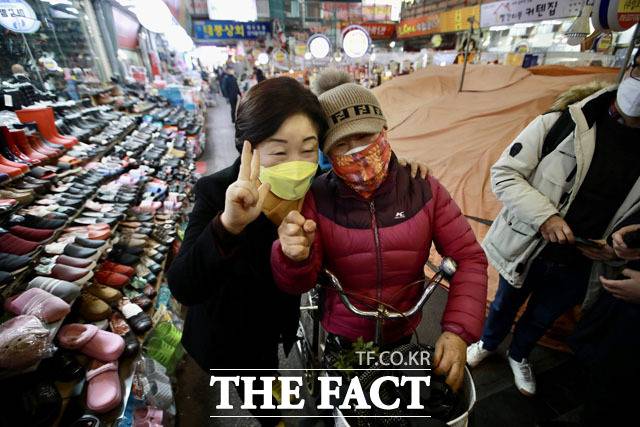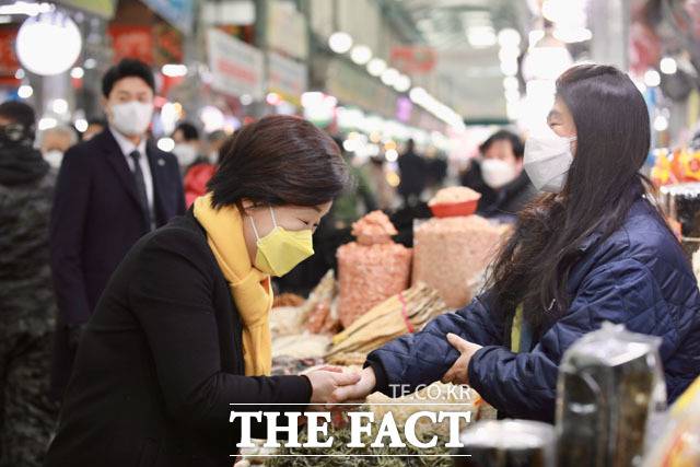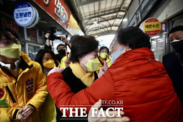 [더팩트ㅣ이효균 기자] 심상정 정의당 대선 후보가 19일 오전 경기도 의정부시 제일시장을 찾아 상인들에게 유세를 하고 있다.