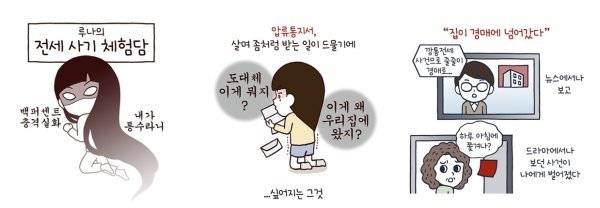 '루나의 전세역전'은 따뜻한 그림체와 섬세한 언어로 사랑 받는 웹툰 작가 겸 카피라이터 루나파크가 본인의 전세사기 경험담을 그려낸 작품이다.