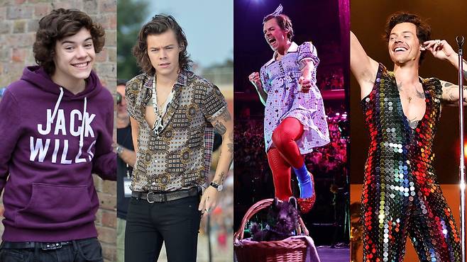 잭 윌스 후드와 탑맨 치노팬츠에서 구찌 가운과 글램 팝 룩까지, ‘Harry’s House’를 들으며 되돌아보는 해리 스타일스의 역사적인 룩 12.