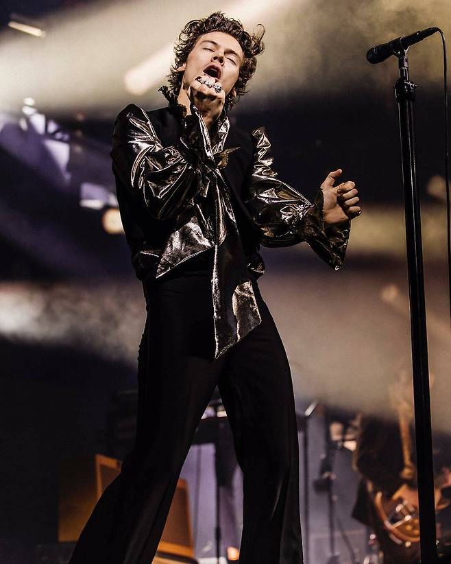 2017년, 18개월의 공백기를 가진 해리가 싱글 ‘Sign of the Times’와 함께 조금 다른 사운드로 돌아왔다. 해리 램버트가 창조한 신사적이면서도 반항기 넘치는 소년의 이미지는 해리 스타일스를 새로운 스타일의 스타로 재정립했다. 화려함과 섹시함 그리고 보위(Bowie)다운 스타일 센스를 지닌 스타 말이다. 프로모션 투어가 시작되면서 한때 후드티가 가장 편안한 옷이라고 느꼈던 소년은 어느새 찰스 제프리 러버보이(CHARLES JEFFREY Loverboy)의 패디드 핀 스트라이프 점프수트를 입고 미국에서 열린 더 레이트 레이트 쇼(The Late Late Show)에 모습을 드러냈다. 더블 브레스티드 재킷과 펑퍼짐한 바지를 입고 야성미와 중성적인 매력을 동시에 뽐낸 것이다. 하지만 해리의 이 착장이 그해의 베스트 투어 룩으로 꼽힐 줄은 그 누구도 예상치 못했다.