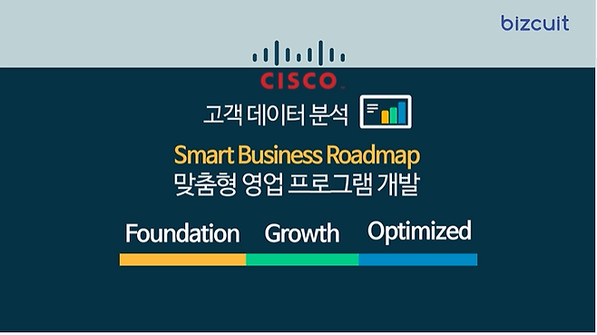 이런 문제점을 파악한 시스코는 우선 기존 중소기업 고객들의 구매 데이터를 분석하기 시작했습니다. 그리고 ‘Smart Business Roadmap’이라는 맞춤형 영업 프로그램을 개발하여 고객들을 크게 Foundation, Growth, Optimized의 단계로 나누었습니다. 그리고 각 단계별 고객들의 니즈에 꼭 맞는 제품과 서비스를 제공하기 시작했죠. 우선 기본적인 인프라 구축에 신경 써야 하는 Foundation단계의 고객들에게는 정보보안 및 커뮤니케이션과 관련된 솔루션을 어필했습니다. 사업을 확장하는 Growth 단계의 고객들에게는 운영 효율을 높일 수 있는 솔루션을 집중적으로 판매했죠. 차별화된 프로세스 구축이 필요한 Optimized 단계의 고객들에게는 CRM과 같이 고객 대응 능력 (Customer responsiveness)을 향상시키기 위한 솔루션을 제시하고요. 시스코는 이 프로그램을 통해 B2B영업의 수준을 한 단계 업그레이드 시키며 매출을 끌어올렸다고 하죠.