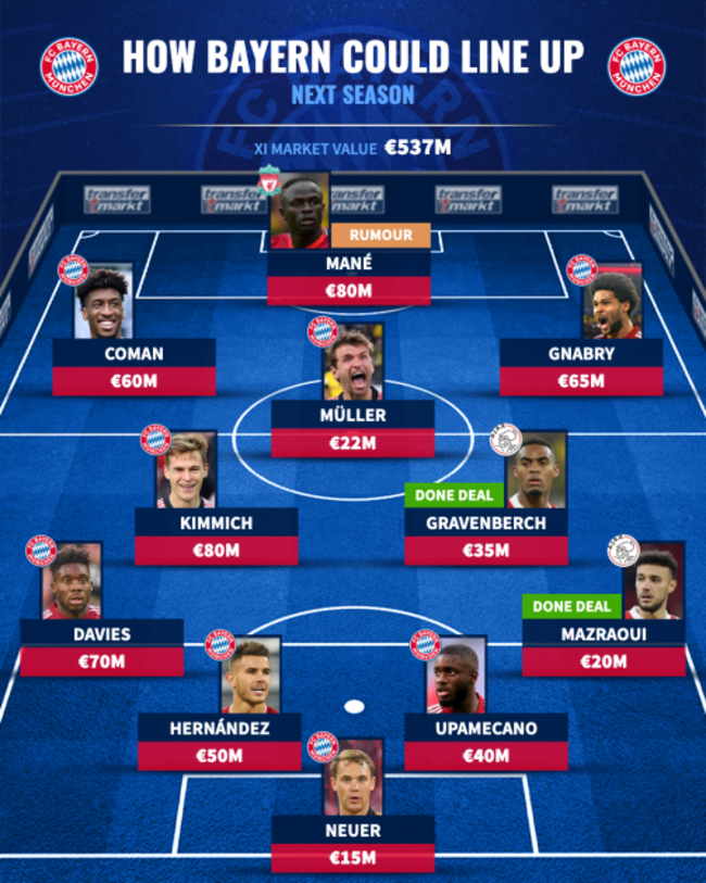 이에 축구 전문 매체 '트랜스퍼마크트'에서 다음 시즌 뮌헨의 예상 라인업을 공개했다.