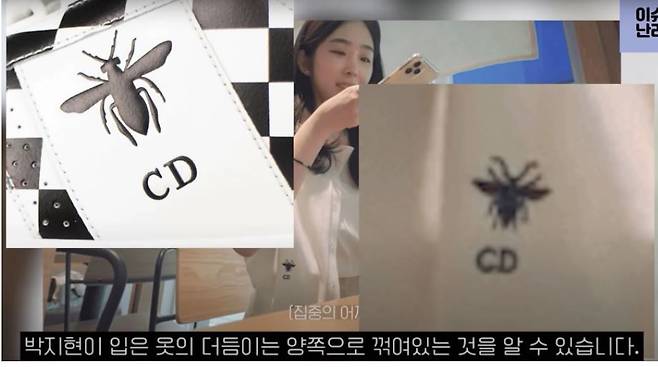 이어 "(가품 논란의 제품은) 디올이다. 박지현의 유튜브 영상에 나오는 디올 카디건의 꿀벌 마크가 정품 마크와 살짝 다르다. 정품 꿀벌은 더듬이가 1자로 됐지만 그의 것은 더듬이가 양쪽으로 꺾여있다"며 가품임을 의심했다.