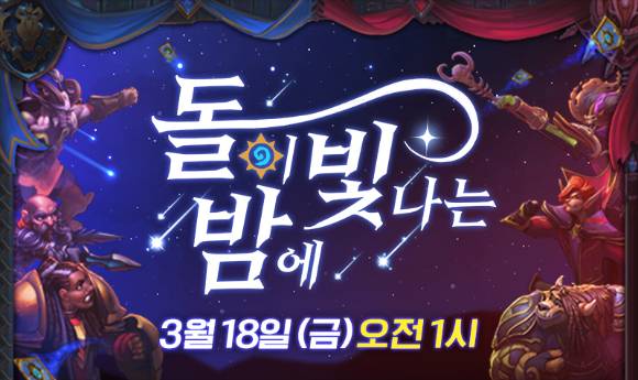 회사 측은 '돌이 빛나는 밤에' 특별 방송을 오는 18일 새벽 1시(이하 한국시간 기준)부터 하스스톤 공식 유튜브 및 공식 트위치에서 실시간 중계한다.