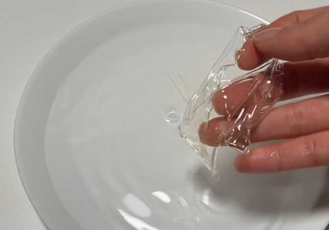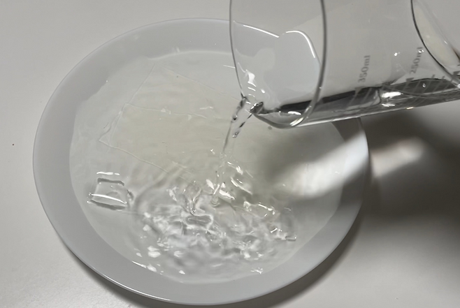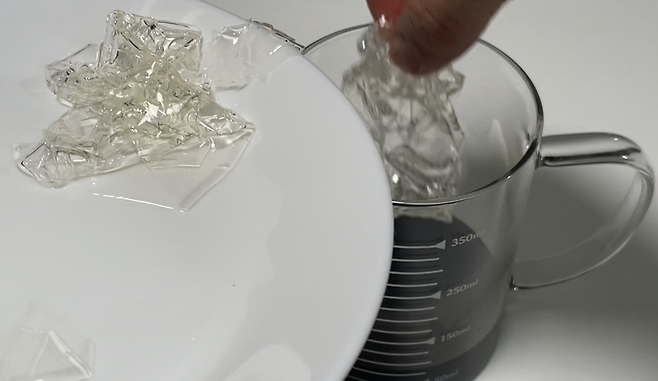 넣자마자 젤라틴이 녹으며 사라지는 모습을 볼 수 있습니다.