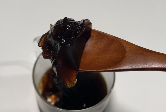 커피가 따뜻할 때 불린 젤라틴을 넣어줍니다.