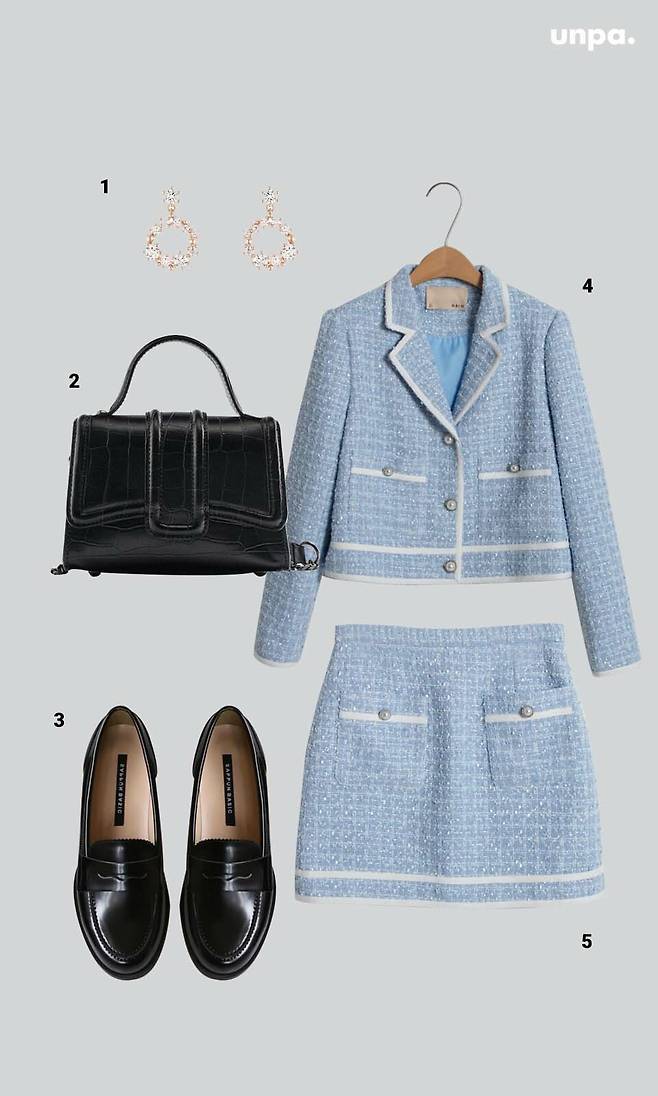 특히 봄 하면 떠오르는 트위드 소재의 셋업은