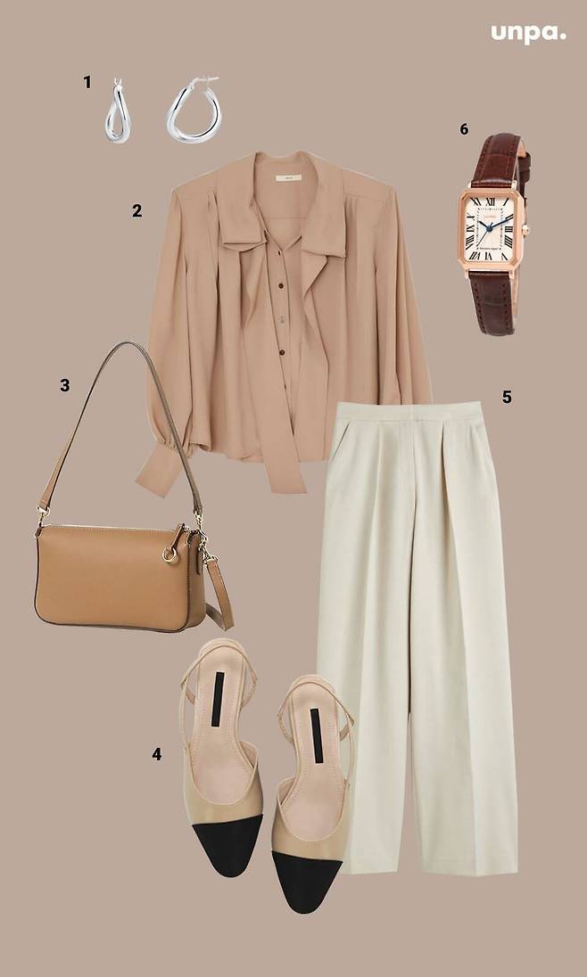 여기에 화이트, 베이지, 로즈골드 아이템을 매치해