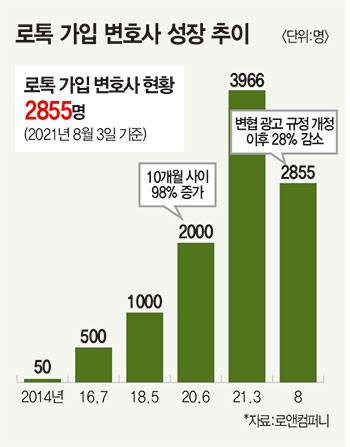 로톡에서 활동하는 변호사 회원 수는 대한변협이 제재하기 이전인 지난해 3월 약 4000명에 달했으나 지난해 11월에는 1706명으로 56% 감소했다. 그러나 최근 헌법재판소가 로앤컴퍼니 손을 들어주며 승기를 잡은 모양새다. 이후 가입 변호사 수도 빠르게 증가하고 있다는 것이 회사 측 설명이다.