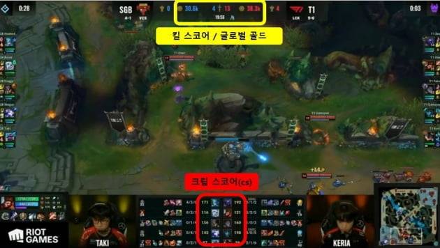축구의 볼 점유율, 유효슈팅 개수처럼 롤에도 경기의 유불리를 나타내는 지표가 있다. 대표적인 것이 크립 스코어(Creep Score·이하 CS)와 킬 스코어 그리고 오브젝트다.