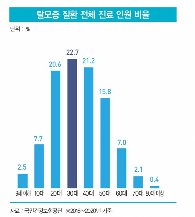 건강보험심사평가원에 따르면 한국의 잠재적 탈모 인구는 1000만 명으로 추정된다. 다섯 명 중 한 명이 탈모로 고통 받는 셈이다. 관련 시장은 4조원 규모다.