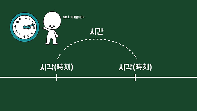 시간(時間)의 어느 한 지점을 시각(時刻)이라고 하고, 시각과 시각 사이를 시간이라고 합니다. 인류는 사회적 합의를 통해 1초, 1분, 1일, 1년 등 시간 단위를 정해놓고 살고 있으므로 빛의 속도에 가깝게 움직이지 않는 이상 누구에게나 시간은 똑같이 흐른다고 볼 수 있습니다.