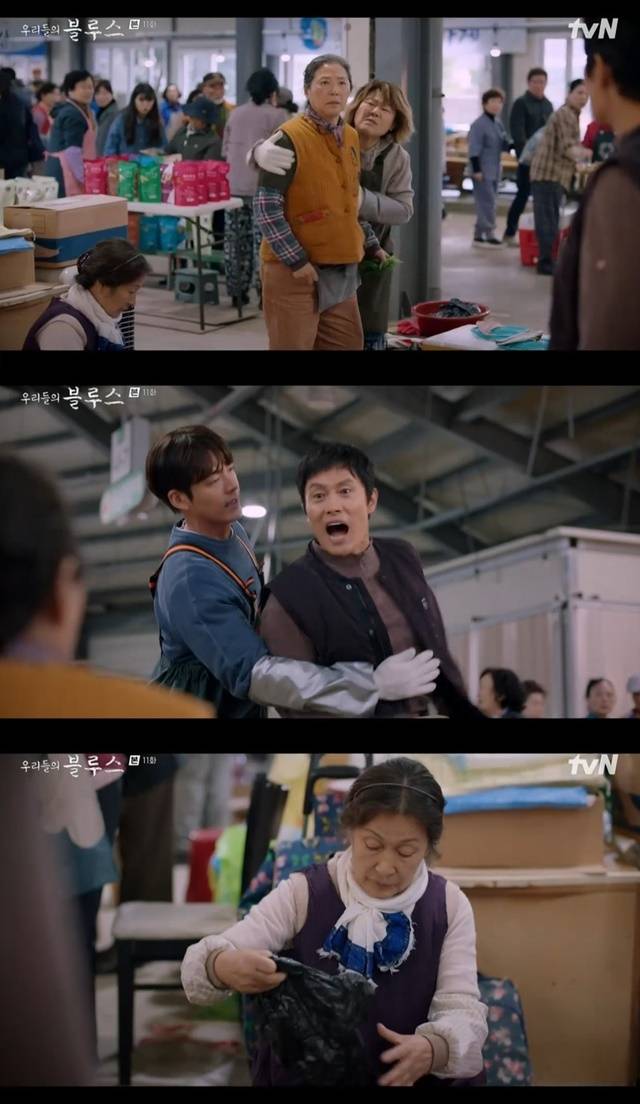 5월 14일 방송된 tvN 토일드라마 ‘우리들의 블루스’ 11회(극본 노희경/연출 김규태)에서 현춘희(고두심 분)는 강옥동(김혜자 분)에게 대드는 이동석(이병헌 분)에게 분노했다.