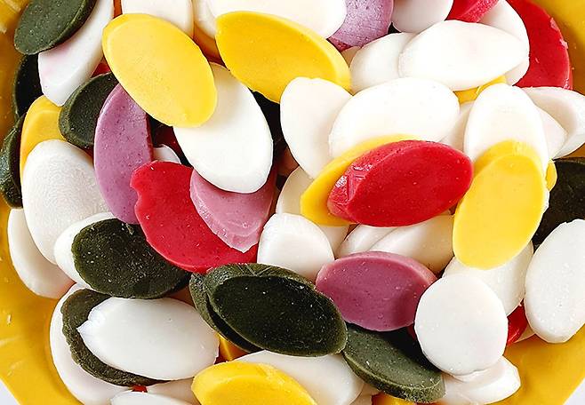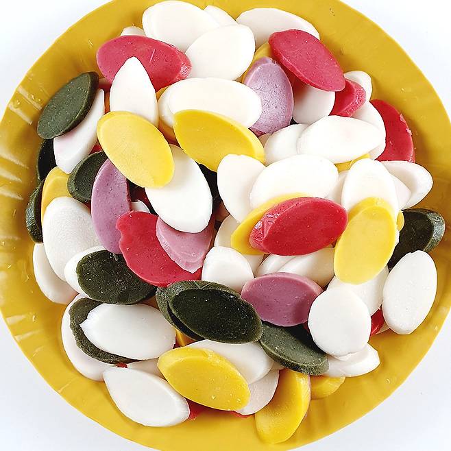 이제 곧 다가올 설날을 맞이해서 가족들과 다 같이 떡국 끓여먹으려고 떡을 구매했어요. 그냥 흰떡과 색깔이 들어간 떡 중에 고를 수 있더라구요. 근데 저는 나이 한 살 더 먹는 것도 억울한데 매년 먹던 똑같은 흰떡 먹기 싫어서 다섯 가지 색으로 되어 있는 떡으로 구매했어요.