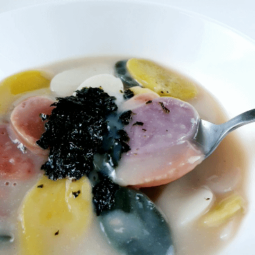 엄마한테 건강 안 좋은 색소 들어간 떡을 샀냐며 등짝 스매싱 맞을 뻔했어요. 천연재료 갈아서 만들었다고 하니까 가서 떡국 한 그릇 끓여오라고 하시더라구요ㅋㅋㅋㅋ 아 떡국 색은 단호박, 쑥, 고구마, 백미, 백련초를 갈아서 색을 만들어냈다고 하네요. (그렇다고 떡에서 단호박이나 고구마 같은 맛은 안 나요..^^)